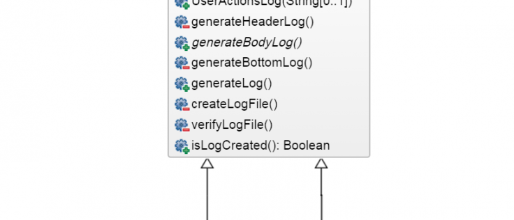 1 – UserActionsLog – This is our Template. We are basically defining the Template for all log generation. You can see that this class is abstract. Also, we implemented the common methods and declared the generateBodyLog() method as abstract because this is the different content from all logs.