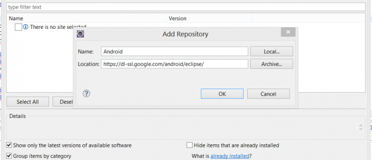 Adicionando o Plugin ADT no Eclipse